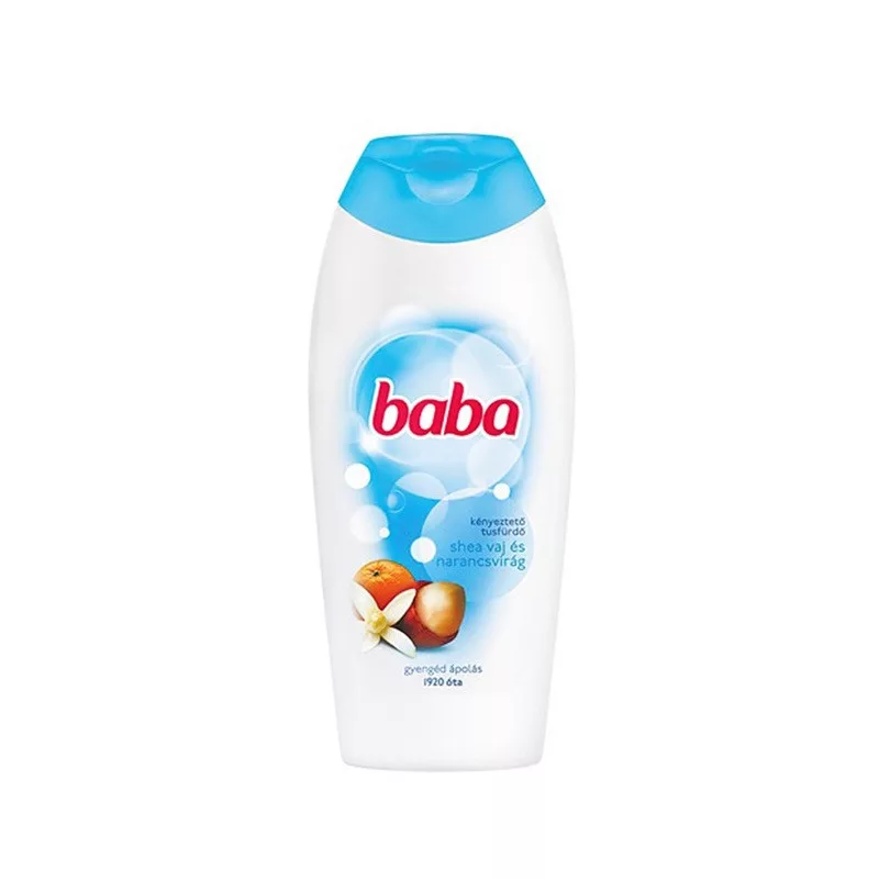 Baba sheavaj és narancsvirág kényeztető tusfürdő 400 ml-es kiszerelésben. A shea vaj az afrikai sheafa, más néven karitéfa gyümölcsének magjából nyert puha vaj.