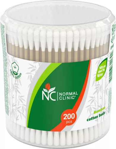 Normal clinic bambusz fültisztító pálcika visszazárható műanyag dobozban felnőtt használatra kifejlesztve.