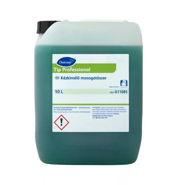A Tip Professional általános mosogatószer alkalmazható kézi mosogatáshoz és mosható felületek tisztításához. Hatékonyan eltávolítja a zsíros szennyeződéseket az edényekről és felületekről és cseppmentes száradást biztosít.